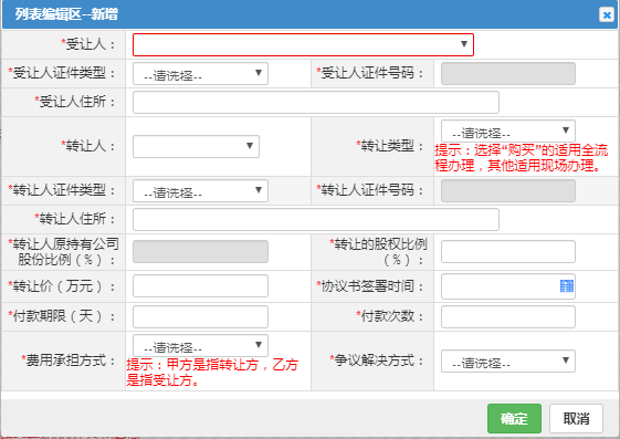 9、點(diǎn)擊增加,填寫受讓人相關(guān)信息;